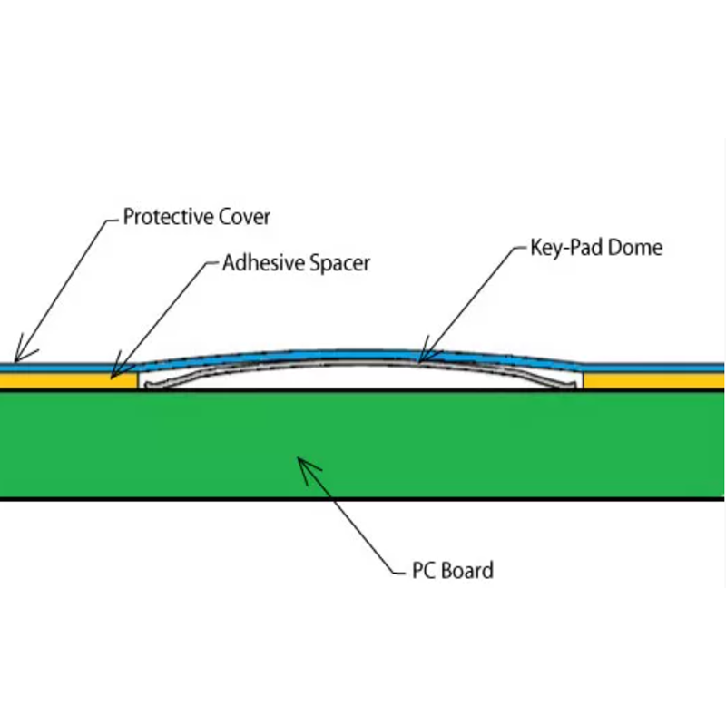 – Metal Dome: This is the primary component that forms the switch. It has a certain level of elasticity and recovery force, allowing it to deform when pressure is applied and return to its original shape once the pressure is released.